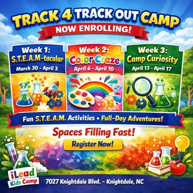 iLead Kids Camp’s Track 4 Track Out Camp offers a fun, structured, and engaging experience for campers during their time off track. Each week features exciting themed programming, including hands-on S.T.E.A.M. activities, creative projects, and interactive learning experiences. Campers enjoy a full-day schedule designed to keep them active, social, and learning in a safe and supportive environment. With a mix of fun, discovery, and friendship, Track 4 campers stay engaged and inspired all session long.